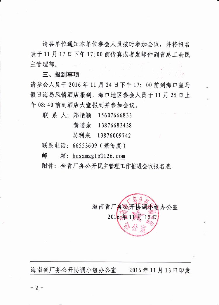 关于召开全省厂务公开民主管理工作推进会议的通知(琼厂开组办发[2016]11号)