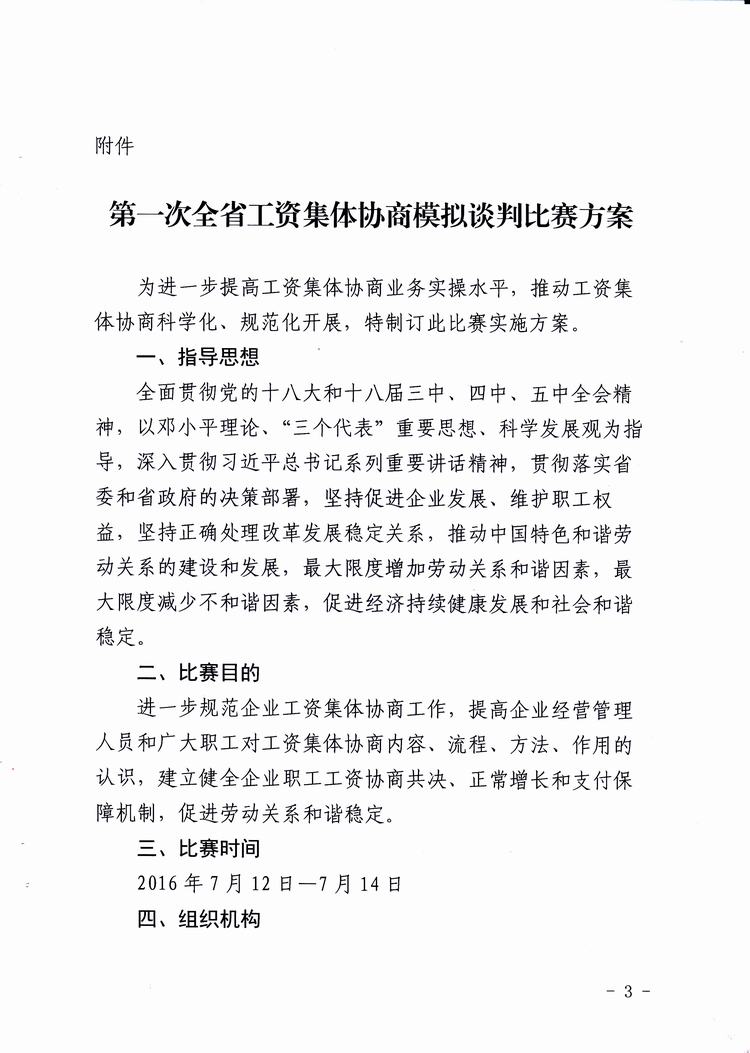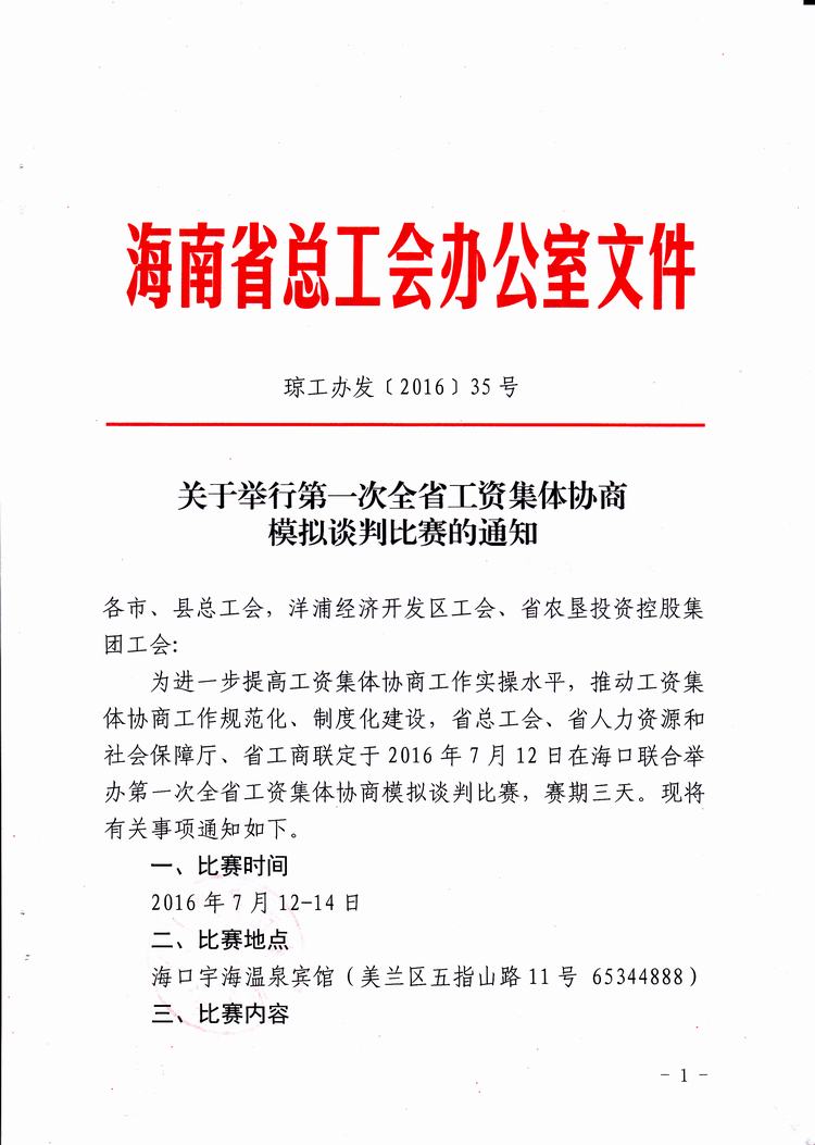 关于举办第一次全省工资集体协商模拟谈判比赛的通知(琼工办发[2016]35号)