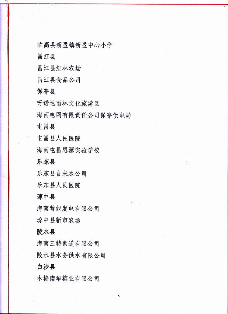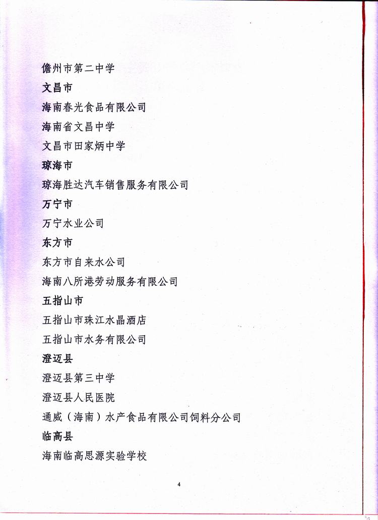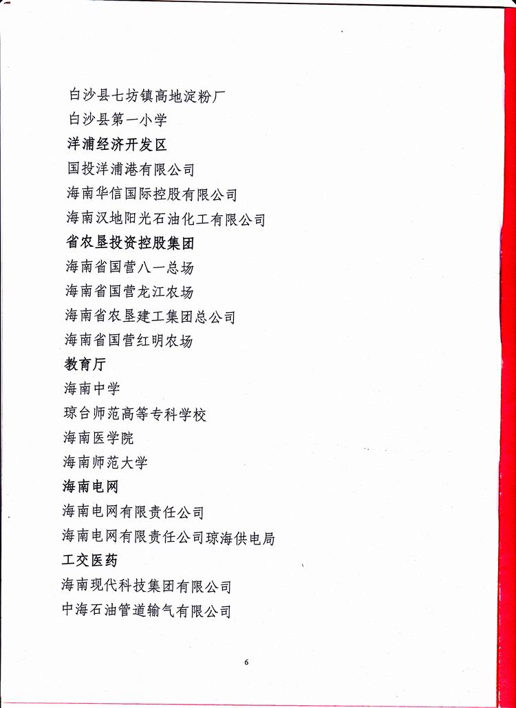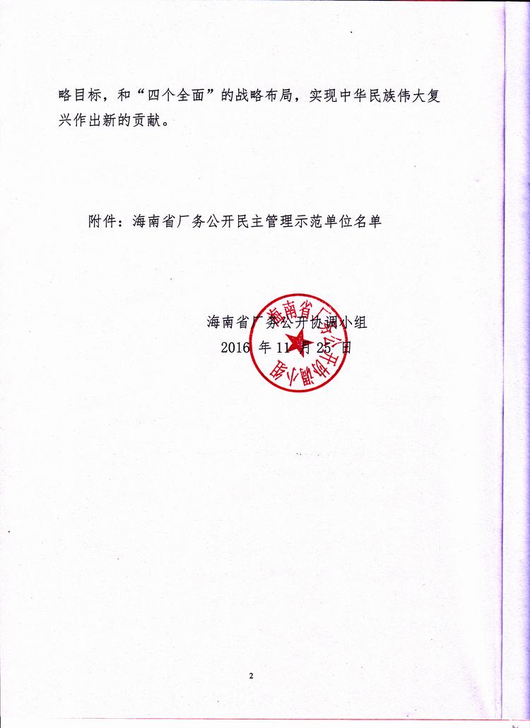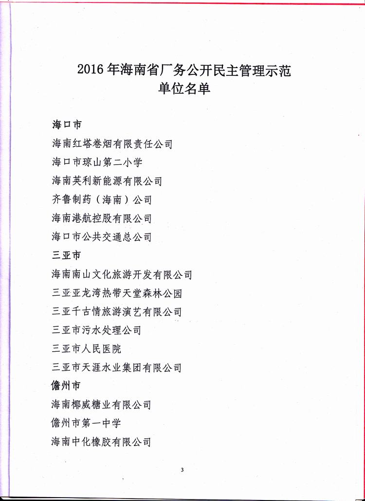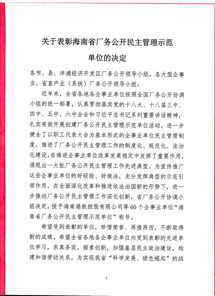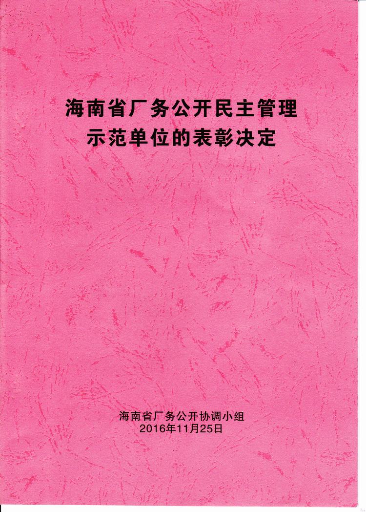 海南省厂务公开民主管理示范单位的表彰决定