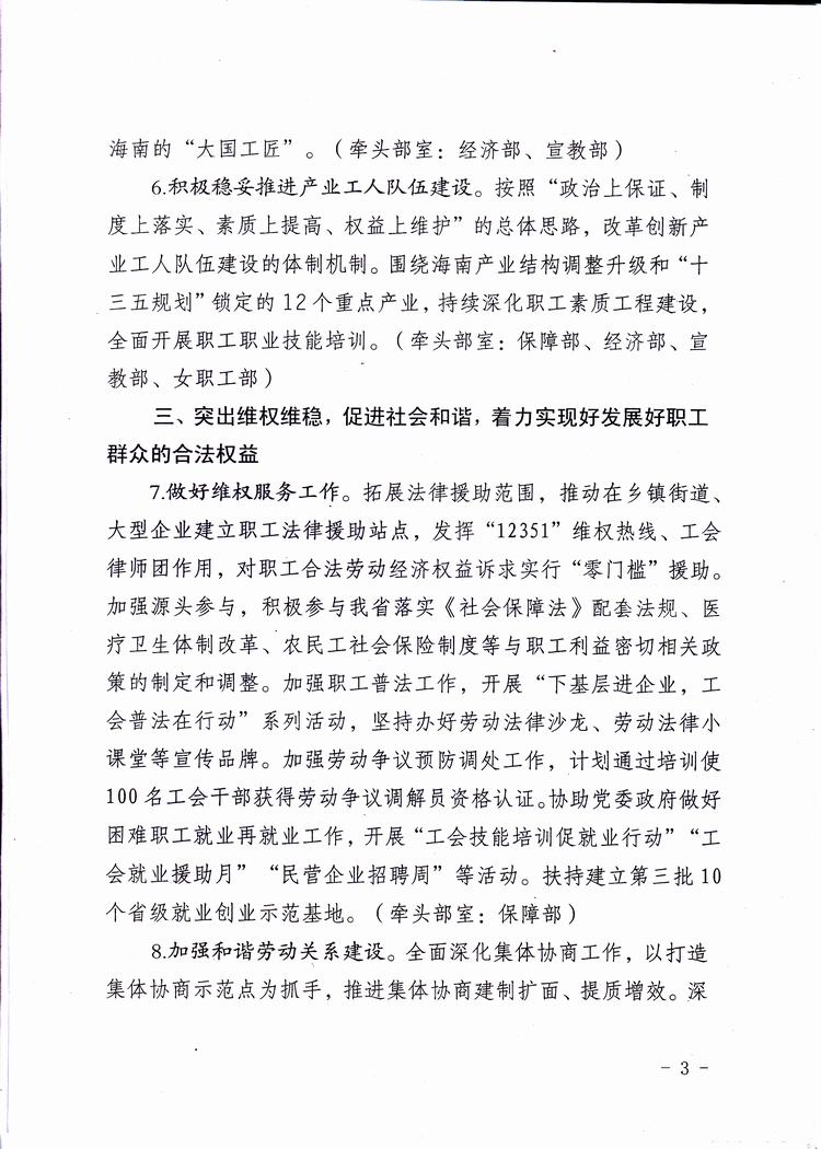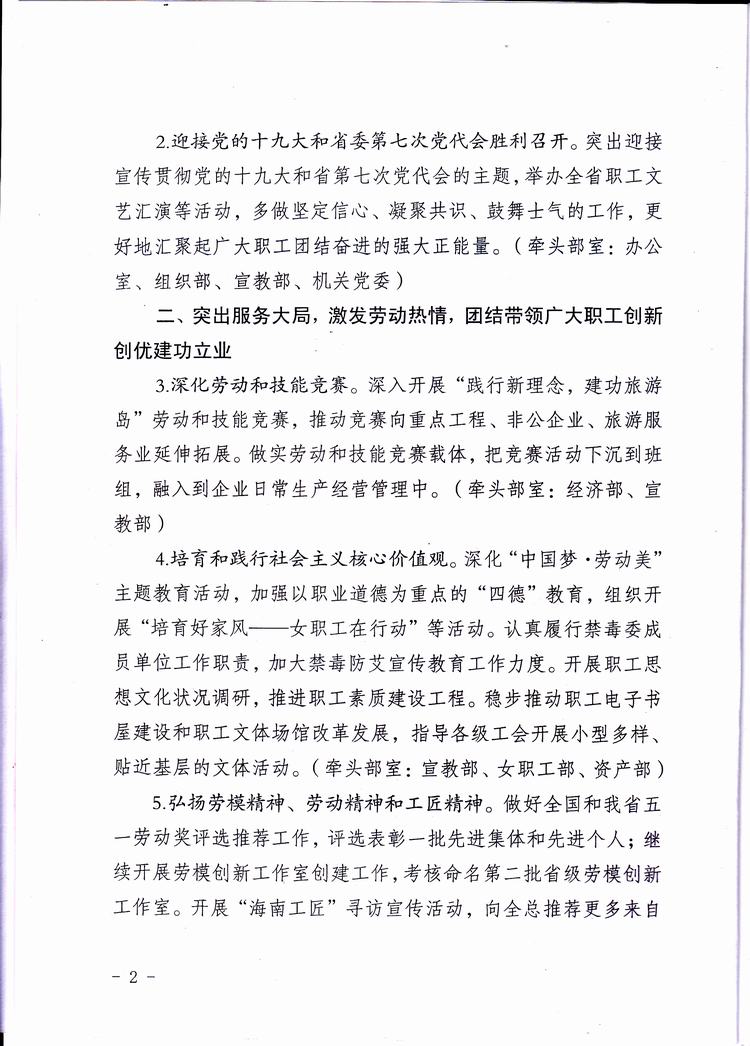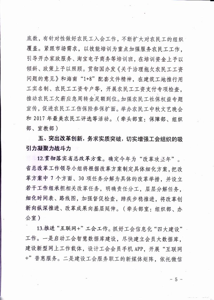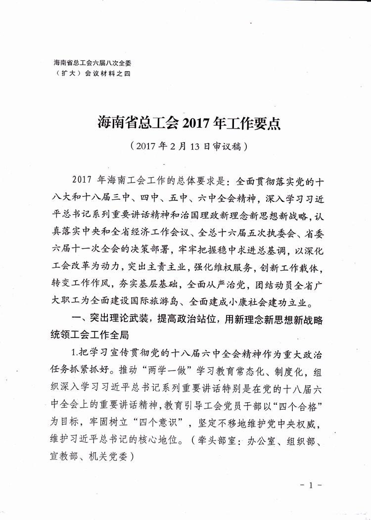 海南省总工会六届八次全委(扩大)会议材料之四——2017年工作要点